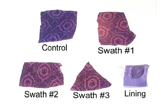 Budinger herself suggests getting a biologist involved and looking at the DNA, but concluded the pink was a result of mould caused by whatever was contaminating the fabric in some areas.